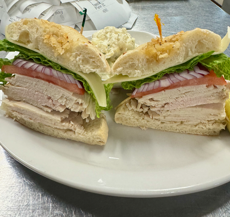Thinly sliced, oven-roasted turkey breast takes center stage in this classic creation, offering a lean and protein-rich centerpiece.