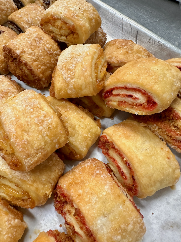Discover the timeless delight of our Rugelach. These handcrafted pastries feature a flaky, buttery dough filled with a delectable blend of sweet fillings, such as cinnamon, nuts, and fruit preserves.