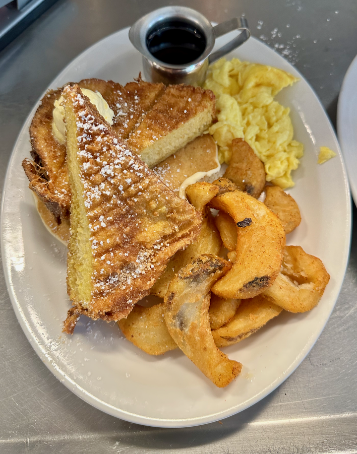 Savor the comforting taste of our French Toast, featuring three thick slices of Challah bread. Cooked to a golden brown, each slice is a delicious blend of fluffy interiors and crispy edges. Whether you choose to top it with maple syrup, a sprinkle of powdered sugar, or your favorite fruits, our French Toast is a delightful breakfast indulgence that's both sweet and satisfying.