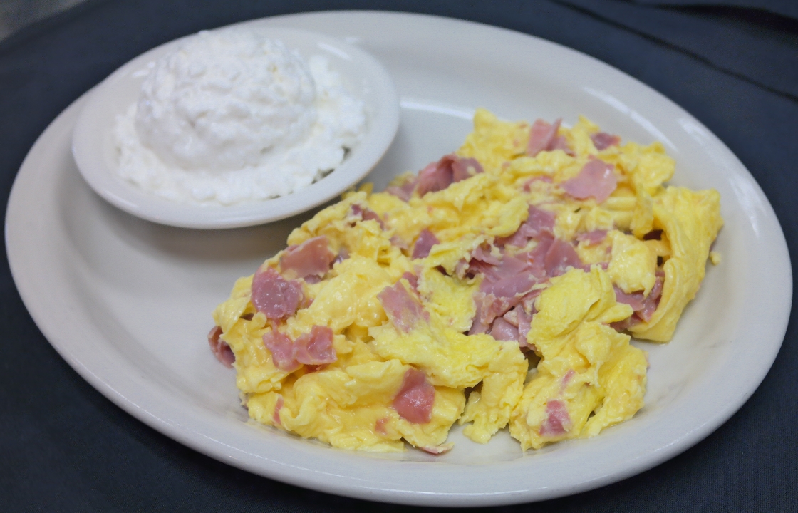 This hearty omelette is filled with tender pieces of ham, sautéed onions, and colorful bell peppers. The entire creation is generously smothered with melted cheese, creating a flavorful and comforting breakfast experience that's sure to satisfy your morning cravings.