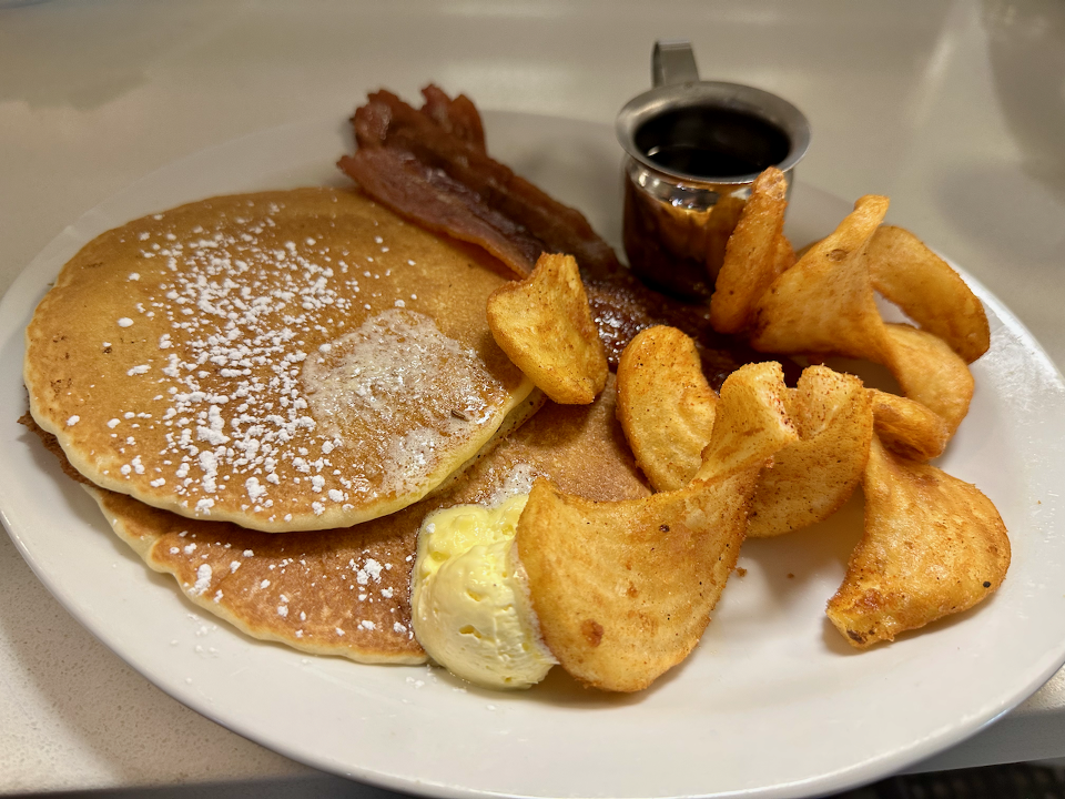 Kickstart your day with our hearty breakfast special. Choose between two fluffy pancakes or two slices of French toast, served alongside a side of crispy home fries. Complete your meal by selecting your favorite breakfast meat—bacon, sausage, or ham. It's a delicious and fulfilling breakfast that's tailored to your taste.