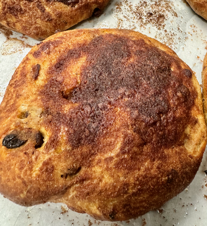 Irresistible bialy dough, generously topped with a perfect blend of cinnamon, sugar, raisins and brown sugar.