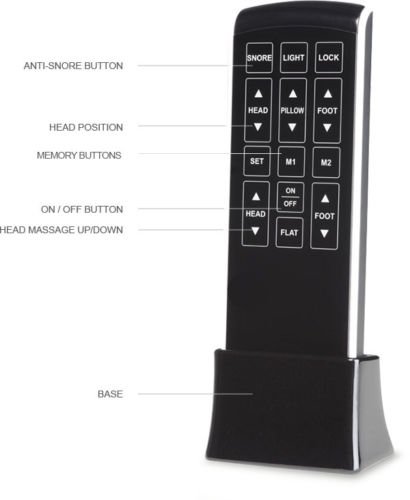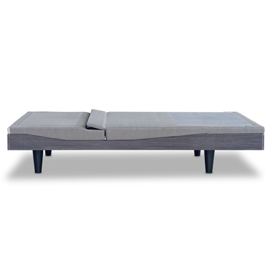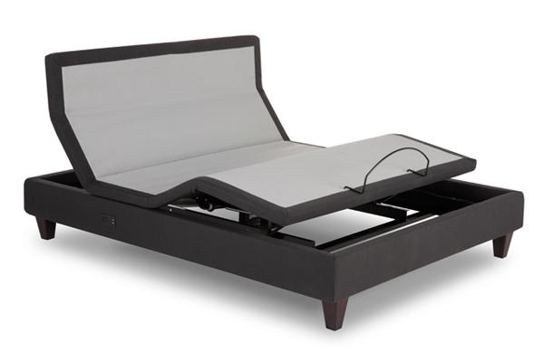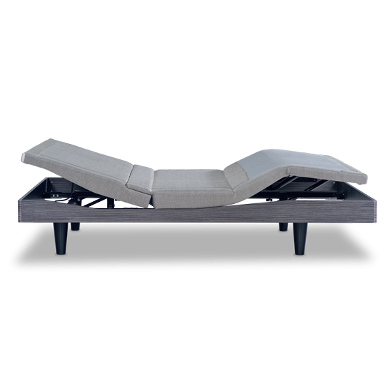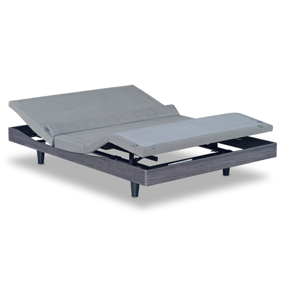 • Sleek grey deck-on-deck design: upholstered upper and wood look, hard body lower. • Infinite positions for head and foot, including presets for Zero Gravity, Anti-Snore and Flat, plus two extra programmable positions. • Innovative lumbar support better aligns with spine and can be adjusted by degree. • Quiet, 3D Wave™ massage. 4 waves, 10 intensities. • OLED remote with high-resolution screen. • Includes innovative charging pad. Charges your cell phone wirelessly while simultaneously charging 9T remote with USB port. • Bluetooth® smartphone enabled.** • Free Nightstand app for iOS. Can set Comfort Settings and Routines to run automatically. • Under-the-bed LED nightlight. • ProGrip™ technology ensures consistent lumbar support while eliminating the need for retainer bars in most applications (retainer bars are still included). • Fits within most bed frames and attaches to most headboards. • Removable side rails for ultimate flexibility. Zero clearance. • 850 lb. weight limit. • 20-year limited warranty. • Includes Electropedic 9" Classic Latex Mattress.