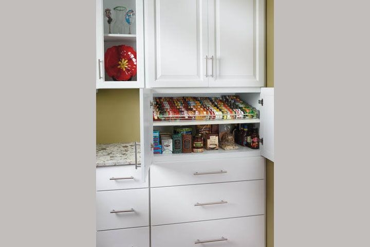 IMPROVING YOUR PANTRY More Effective Kitchen Storage A disorganized pantry is a kitchen nightmare! Pantries often consist of a couple shelves that are incapable of effectively meeting a family’s food and storage needs. By creating a new, custom-designed pantry, you can maximize space; better organize your food, dining ware, cookware, and kitchen supplies; and improve the overall appearance of your kitchen and food storage space. Our Phoenix home storage systems experts at Space Solutions are here to help you make life much easier with a well-organized pantry! You can completely transform your pantry with features such as: Custom shelves Pull-out baskets and drawers Dividers used for improving organization Space-maximizing accessories Custom-designed display area Doors to help conceal certain items Phoenix Home Storage Systems We have an unlimited selection of designs, finishes and accessories for you to choose from. Let us take your pantry from a clutter zone to a strategically designed kitchen storage area!